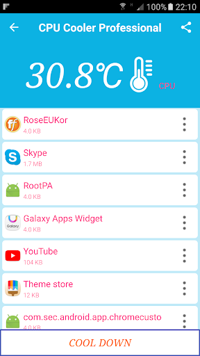Professional temperature monitoring and controlling app that detects and closes heavy resource consuming apps to reduce CPU usage and lower phone temperature.