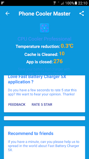With all these awesome features, Smart Phone Cooler is the best choice to detect apps with high CPU usage and close them to make your device cool. In addition, Phone Cooler Master also helps to increase the battery life, clean the RAM, and boost your phone speed. CPU cooler for Android is a smart tool in other words cool master cool phone, device cooler, CPU booster, smart cooler master and its heat algorithm is very effective to reduce CPU utilization, which ensures long battery life. Battery Cooler Additional functionality of the Phone Cooler App for Android is the solution to battery problems with battery-saving mode with telephone cooler.