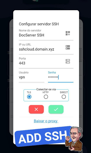 You can also add your own SSH server and download our proxy on github to use SSH over TLS on your server over websocket.