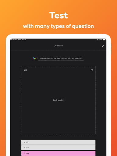 -By comparing your habit to other users, AI continuously personalizes the level of difficulty and the amount of your test for effective vocabulary memorization.