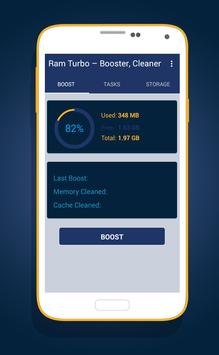 Ram Turbo, help you to stabilize your RAM and unused apps boosting your smartphone made easier with one-click Boost Button!