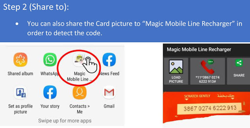 This magic application aims to recharge your mobile line using camera or image rapidly instead of typing recharging code manually. Moreover, you can share the scanned recharging code to other persons.