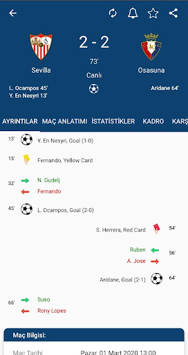 Can't watch the game? Don't worry, get the results at the same time with those on the pitch with AirScore. Watch the goals you missed and missed from the videos section. Watch the highlights.