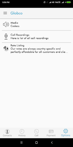 Globco Call is a FREE softphone application which allows users to make voice calls through their SIP accounts provided by Globco services on any Android™ device (version 4.1 ) from anywhere in the world, via either cellular data or WiFi.