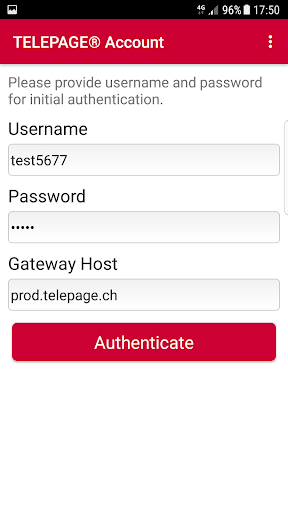 Für die Nutzung der TELEPAGE® APP benötigen Sie eine gültige Authentifizierung. Diese Authentifizierung erhalten Sie beim TELEPAGE Provider via E-Mail cc@swissphone.com.