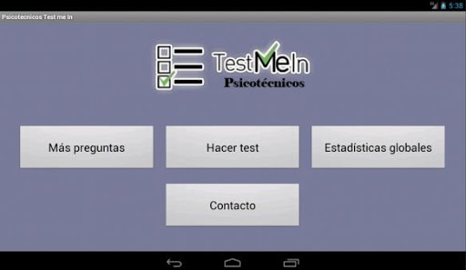 Test Me In Psicotécnicos es la versión de psicotécnicos de la aplicación multidisciplinar Test Me In. Las preguntas que contiene Test me in... son 100% originales, actualizadas y constantemente revisadas, por lo que son comprobables y están sujetas a asistencia por parte de sus creadores en el foro de la aplicación www.testmein.com/index.php.