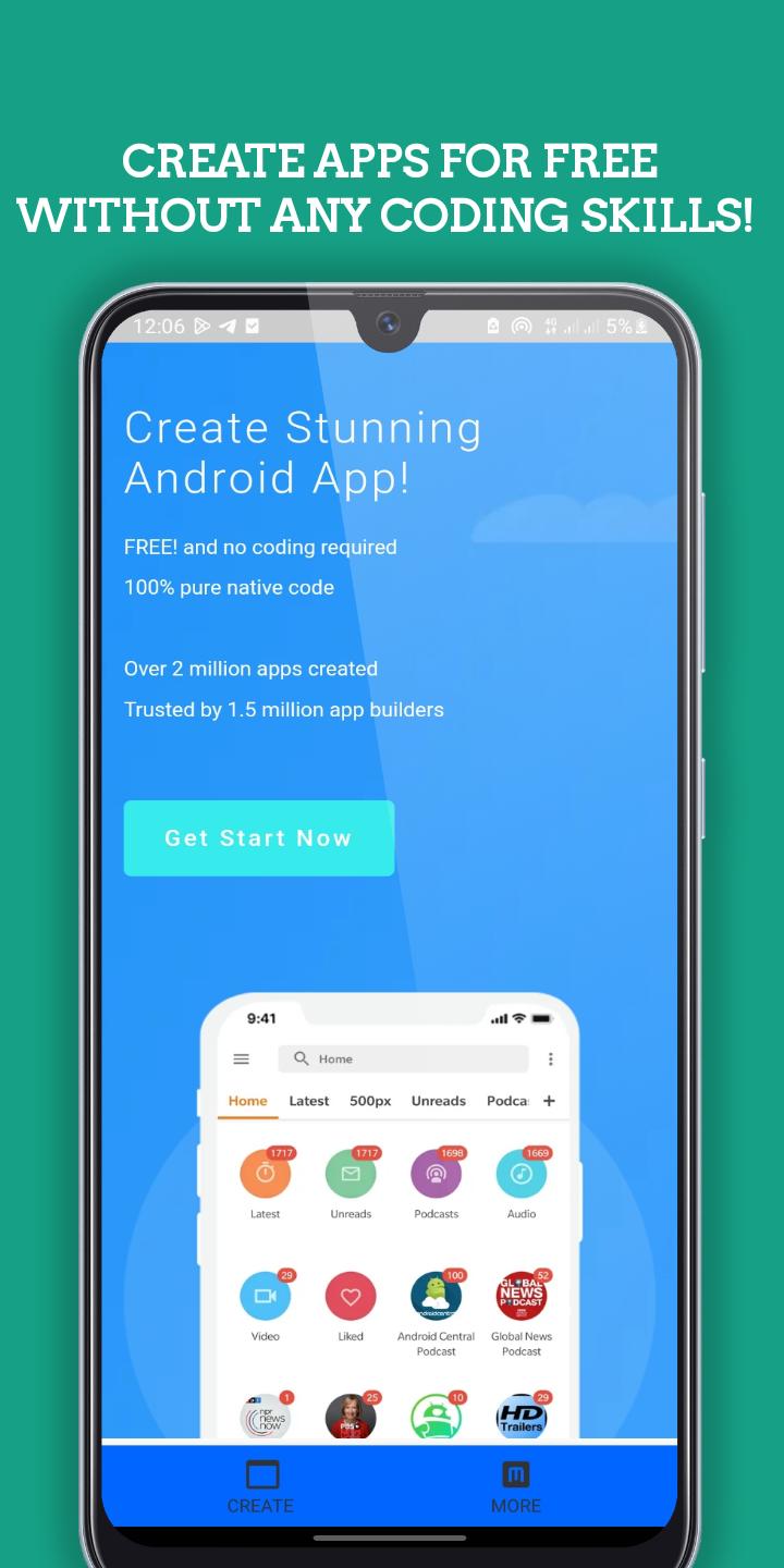 So start creating your own app and make your business app, project app or event app. This is a freemium app so no money is needed to start. You can start building a free app now and have results in minutes.