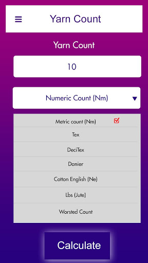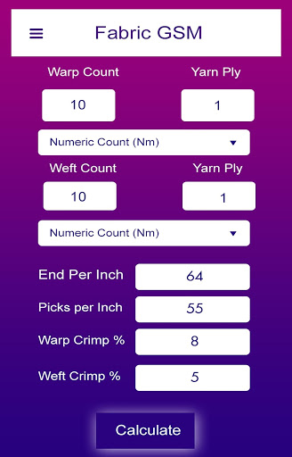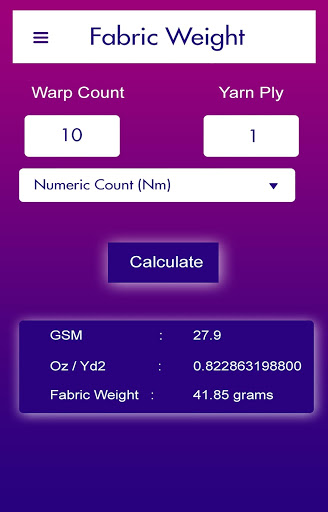 to calculate the length of yarn, chose “fabric weight calculator”option to calculate the weight of fabric, and for calculating GSM of fabric click on “Fabric GSM calculator”. All the calculation is in just one App that’s this App called as multiple featured App.