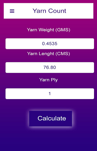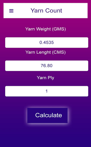 See how simple,easy,smart and quick calculation app it is. You will get your calculation very quickly in simple statistic way. Calculating Yarn has never been easy but with the help of this “YARN CALCULATOR” App it can be very easy to calculate. This app is very useful for you all. You daily work is going to be very easy with using this Application. You will be able to save your daily time.