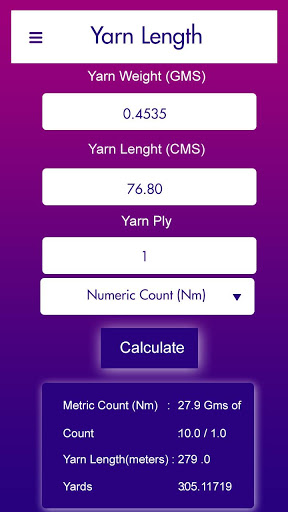 If you want to calculate all the things of yarn like length, weight, convert or for getting all the information about yarn in a proper statistic way then install this multiple features Application now.