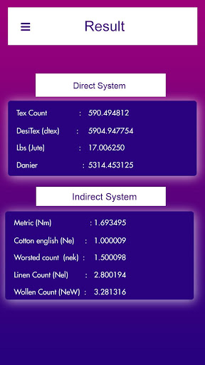 In all the option the processes are same to calculate yarn, you just need to write the information and click on calculate and done! The calculation will output in two option direct system and indirect system so that you can understand that very easily. In just few seconds and then you will get the perfect calculation.