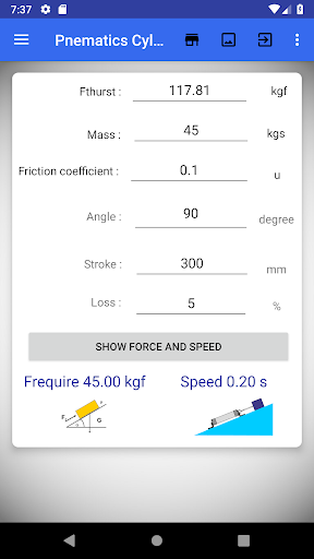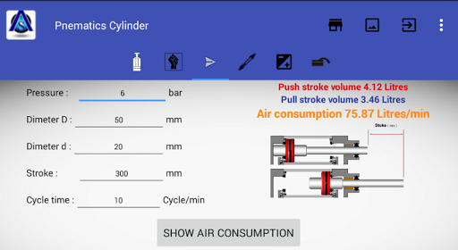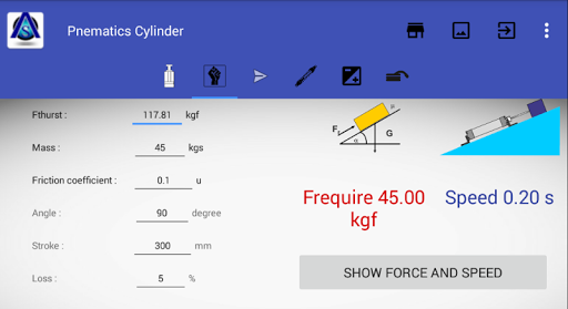 Pneumatic Cylinder calculation tools provide for automation system calculation and define for how to right choose equipment and reduce time for working with pneumatic systems. Such as;