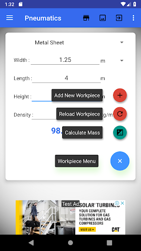 - Workpiece weight calculation
