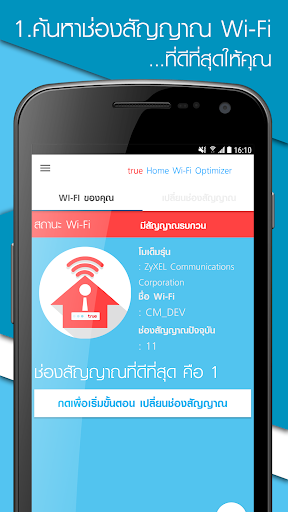 แอพพลิเคชั่นที่ให้ลูกค้าเปลี่ยนช่องสัญญาณ Wi-Fi เป็นช่องที่ดีที่สุด โดยไม่ต้องมีความรู้ในการ configure โมเด็ม เพื่อหลีกเลี่ยงปัญหาสัญญาณรบกวน ได้ด้วยตัวเอง