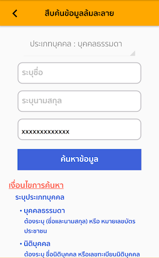 - ตรวจสอบข้อมูลบุคคลที่อยู่ระหว่างการล้มละลาย