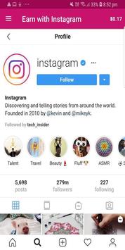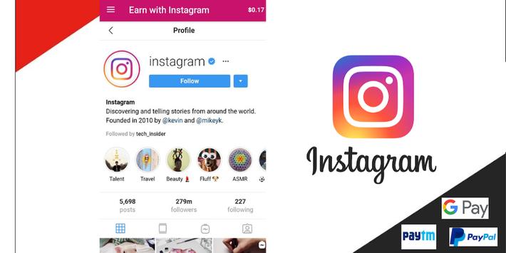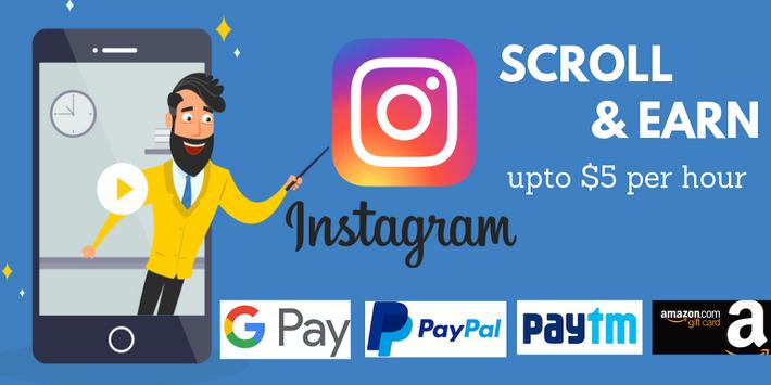 This application helps you earn upto $5 per hour, simple use Instagram and start earning as you scroll