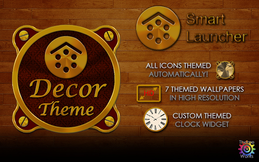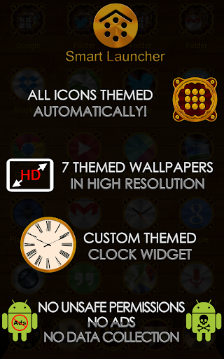 Smart Launcher theme. Extremely detailed and high quality elegant and modern Smart Launcher theme with high definition graphics auto-themed icons, 7 custom themed HD wallpapers, and a metal clock widget, to give very detailed and defined graphics even in devices with the highest resolution screens. Everything is themed to the last detail, using metallic textures, lighting effects, reflections and gradients to give a great contrast and quality look.