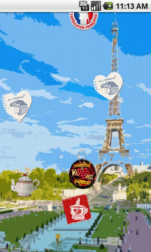 In the spirit of a live wallpaper, famous french items are falling from the sky. You can pop them to get a high score! You can also make them float faster, slower, left, right, down, or turn them off completely for a simple wallpaper :)