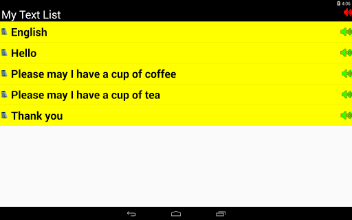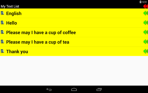'Tap n Talk' is a text to speech application. It may help enable any vocally impaired person to communicate verbally. The app is suitable for any country. The phone’s language code is detected and headings within the app will be created for the following languages :-