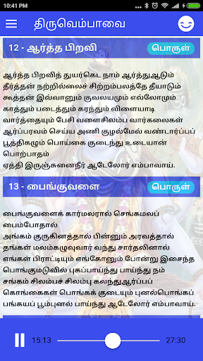 I wanted to give a clear and better audio, so the size of the application might be big. Please download, read and listen to Thiruvembavai (திருவெம்பாவை) devotional song offline.