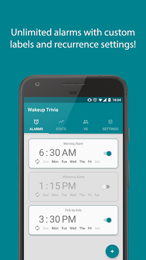 » Recurrence options - Need an alarm for weekdays but something different on the weekends? Wakeup Trivia has you covered.