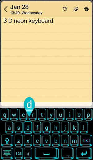 Apply this 3D Neon Keyboard. And Makes your Keyboard look Beautiful. >> Makes your keyboard Fancy,Stylish Neon Keyboard With 3D Effect. >> Easy to use >> Fast working and light weighted >> Too many emoji in Keyboard