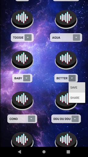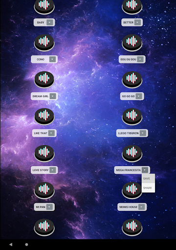 To do this you must choose the song you like the most and press the button to start playing it 🔉, you can dance 💃 hours and hours without stopping. You can also save the sound in the internal storage of your device (Downloads folder).