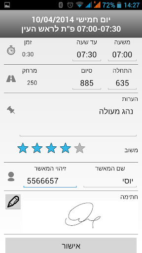 הלקוח יכול לאשר ולשלוח את פרטי ביצוע הנסיעה (ויזה) מהמכשיר שלו או ממכשיר הנהג.