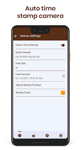 Auto Date, Time & Location helps to remember you to perfect date and time wherever you capture photos. Settings here you can done by your preferences, you can change font, time-stamp position, photo name, change it easily.
