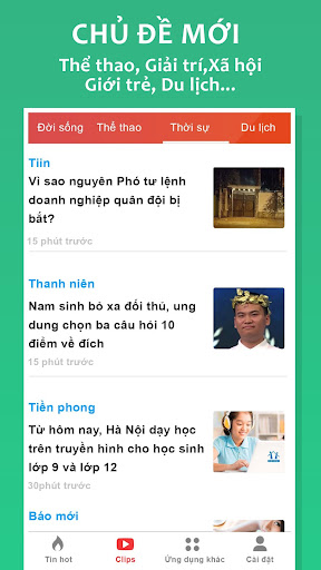 Tin tức là ứng dụng không thể thiếu để cập nhật thông tin thời sự, chính trị, văn hóa, thể thao tổng hợp cho tất cả mọi người. Giúp cho người đọc có những tin tức nóng hổi, nhanh chóng, dễ dàng nhất.