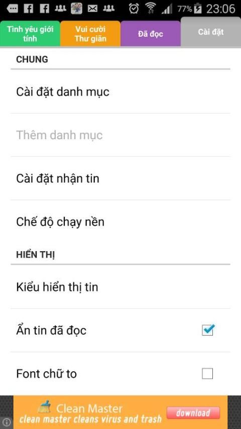 * Tinh nang tin tong hop giup cho ban cap nhat cac tin moi nhanh chong.