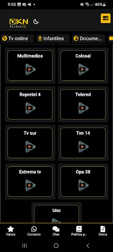 Se Incluye una lista extensa de los Canales de Televisión mas populares de entretenimiento, farándula, deporte, películas, comedia, y mas.