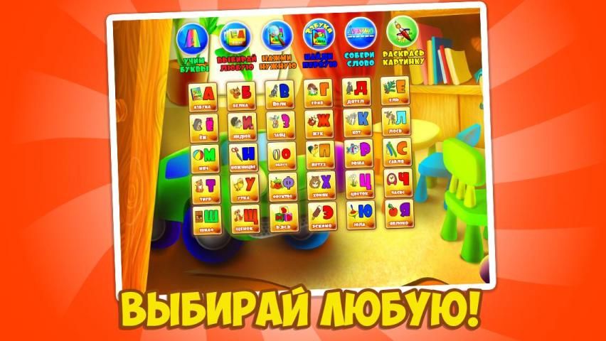 "Азбука" в игровой форме поможет малышам выучить алфавит и научиться складывать слова.