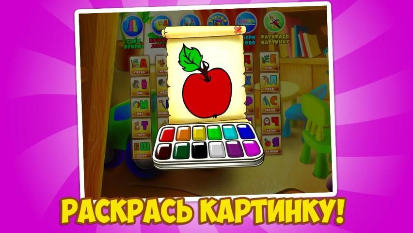 К каждой букве бонусный режим - цветная раскраска!