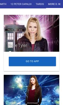 The Doctor Who app include the: 9th Doctor, 10th Doctor, 11th Doctor, 12th Doctor and the tardis.