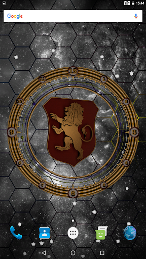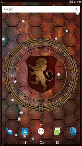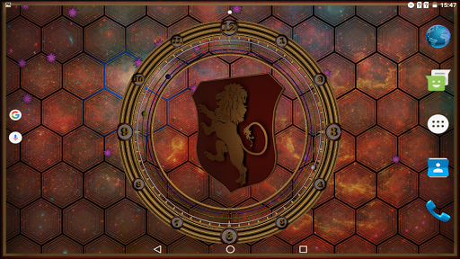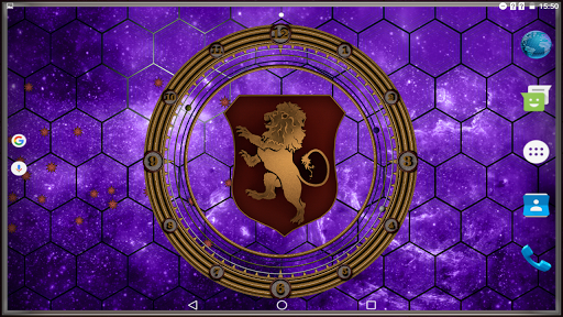 Cool live wallpaper with 3D leo coat of arms and original beautifull clock. You can choose color of space background, type and color of stars, flying above, one of their behaviour type, color of backlights and frames type in the screen borders to customize your wallpaper. Original and beautifull!