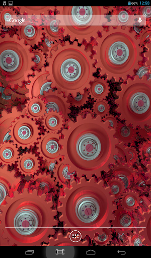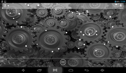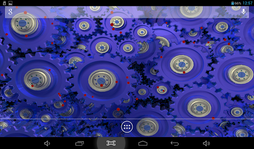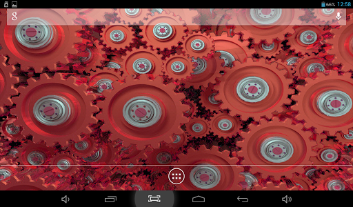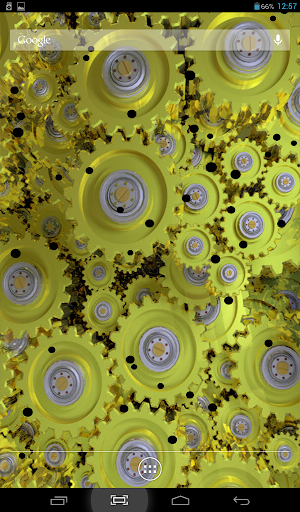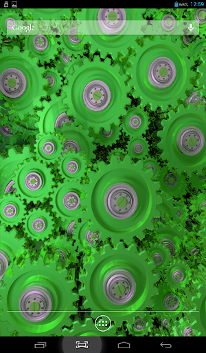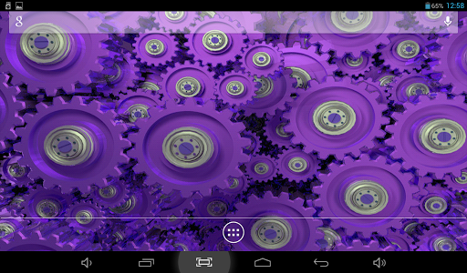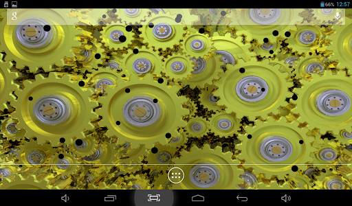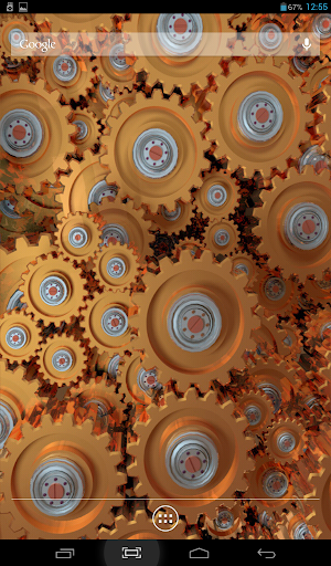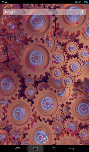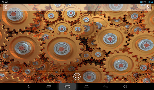 Original live wallpaper with rotating gears. You can choose color theme, one of two types of camera position, accelerometer effects, color, size and type of behavior for dust particles, flying above. Cool and beautiful.
