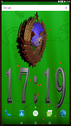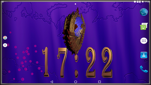 Digital clock with 3D USSR coat of arms, rotating 360 degrees. You can choose color of background, size and color of partilcles, flying above, size of coat of arms, color of numbers and type of frame to customize your wallpaper. Direction of rotation depends on your device position. Beautiful and original!