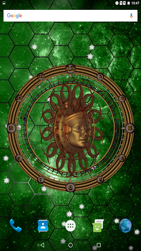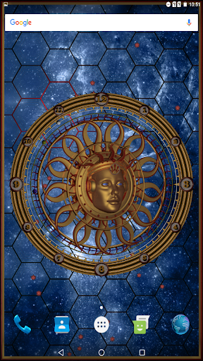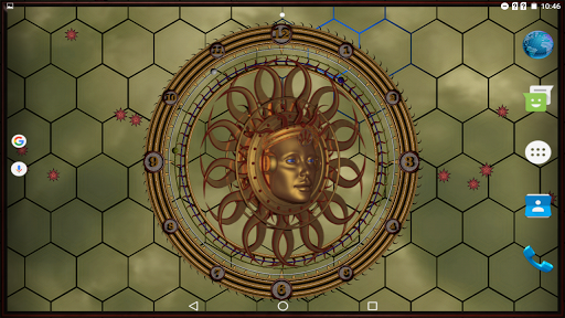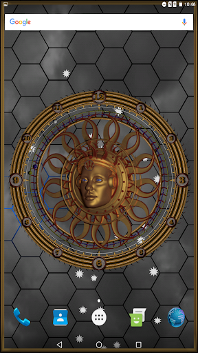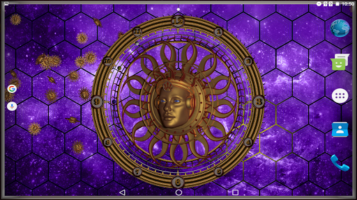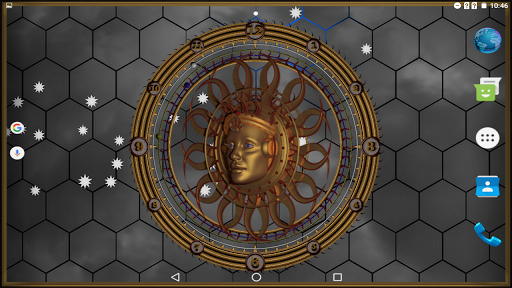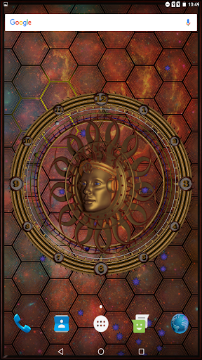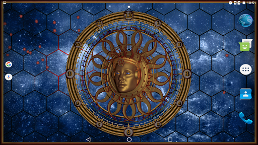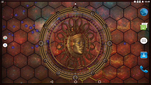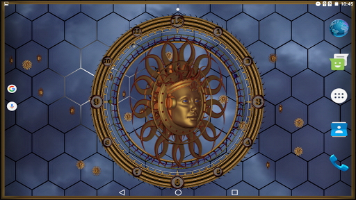 Original 3D live wallpaper with an artistic image of the Sun and clock function.