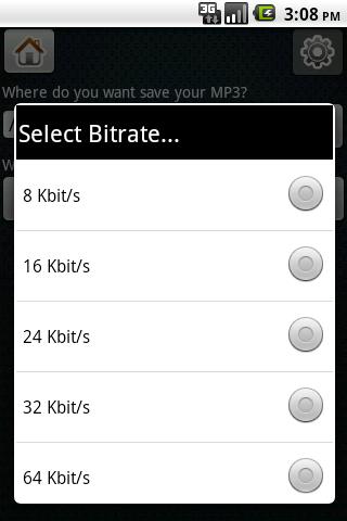 Setting bitrate: 8Kbit/s, 16Kbit/s, 24Kbit/s, 32Kbit/s, 64Kbit/s, 128Kbit/s, 192Kbit/s, 256Kbit/s.