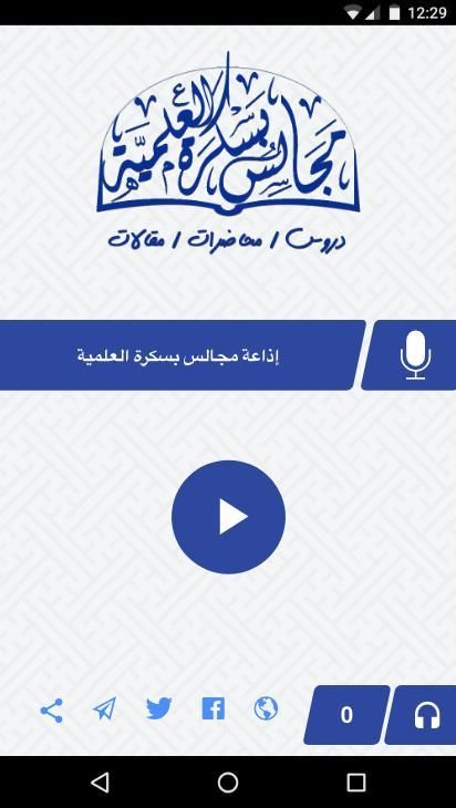 تطبيق إذاعة مجالس بسكرة العلمية: دروس و محاضرات يومية مباشرة و مسجلة لثلة من مشايخ أهل السنة