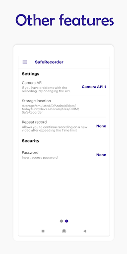 The useful functions of the application allow you to configure the quality, recording time, storage location and the possibility to repeat recording automatically.