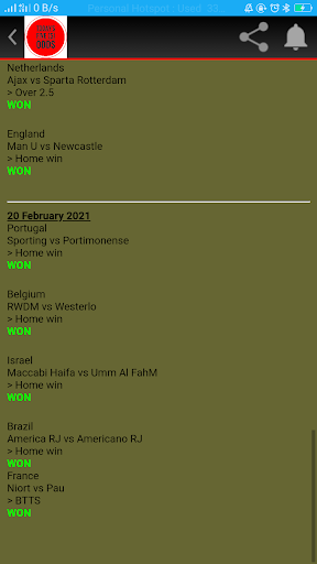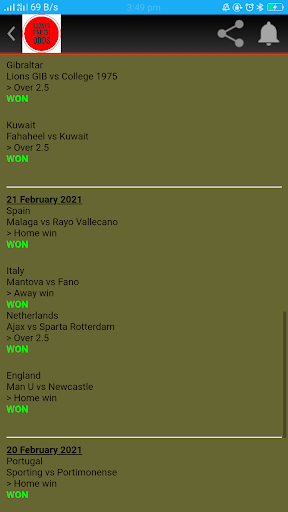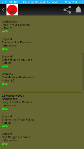 in the app we offer betting tips ranging from home or away win, both teams to score, over or under goals, draws and other markets.
