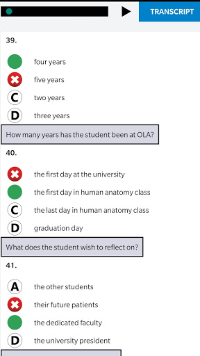 On Exam Day: This part consists of 3 or 4 audios and 12 questions in total. You will need to choose the best answer. The narrator will introduce the monologue with a simple sentence (ex. "Listen to this instructor speaking to his class about a TV program"). The conversation will not be repeated.