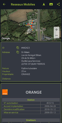 Aplicativo ' Redes móveis 'Permite que você conheça a posição e as características das antenas dos principais operadores de rede móvel da França (Orange, SFR, Bouygues Telecom e Free Mobile).