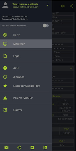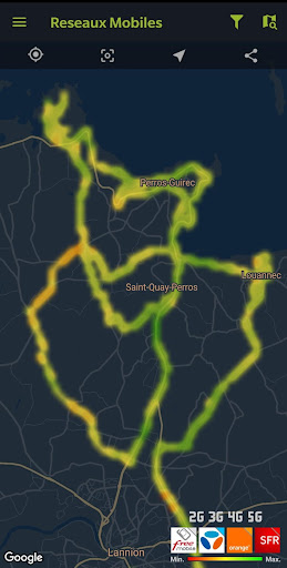 Este aplicativo funciona no modo conectado ou no modo desconectado (baixando a atualização todos os meses). Cobertura móvel (a partir de pesquisas de nível de sinal capturadas pelo seu telefone) e compartilhe esses dados para estabelecer uma placa de cobertura para redes móveis na França (crowdsourcing).