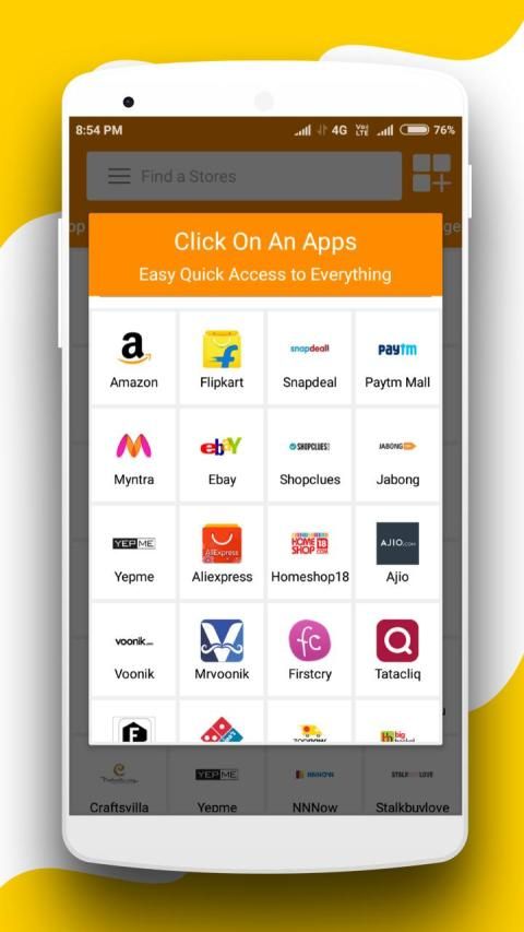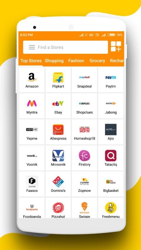 Flipkart Shopping, Amazon, Snapdeal shopping, Shopclues Shopping, Paytm Mall, Myntra Shopping, Jabong Shopping, Mr. Voonik Shopping, ebay Shopping, Tata CLiQ, naaptol, homeshop18, AliExpress, Ajio etc.