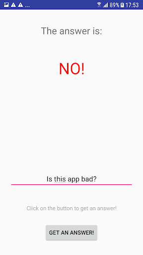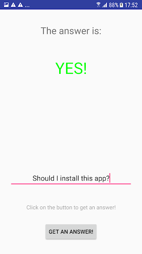 Imagine the following situation: You are in love with a person but you are not sure if he/she is. Just type in the question and the app will give you a yes or a no as an answer!