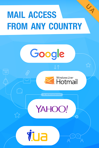 Mail.Ru for UA provides worldwide access to Yandex, Mail.Ru, Gmail, Outlook and other email services through a secure connection. No VPN or other geo-blocking apps needed.