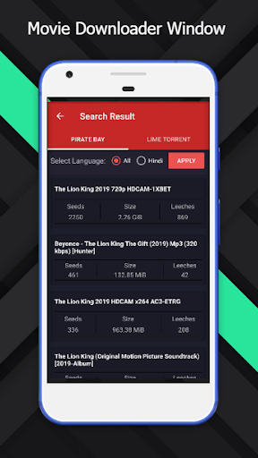* Browse the PirateBay and download unlimited movies directly from torrent Movie Downloader.